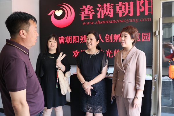 7月7日,中国残疾人联合会的专门协会——中国智力残疾人及亲友协会主席胡斌带队,到朝阳区善满朝阳残障人创孵示范园调研智力残疾人就业工作。