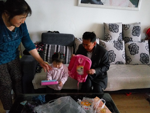 小汐月今年4岁,已经到了上幼儿园的年纪,看到别的小朋友每天都去幼儿园读书自己的心里是非常的失落。为了鼓励和帮助她早日去上学读书,八里堡街道的志愿者为她送去了书包和学习用品,看到叔叔和大哥哥、大姐姐们送来的节日礼物,小汐月非常地高兴。