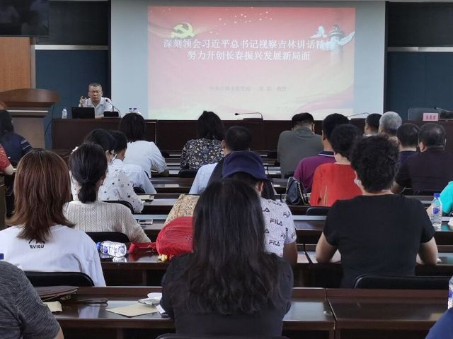 为深入学习贯彻《关于市直机关基层党组织和广大党员认真学习贯彻习近平总书记在吉林、长春考察时的重要讲话重要指示精神的通知》文件精神,8月10日下午,市残联邀请长春市委党校经济学教研部主任、教授吴笛,为全体党员干部做关于《深刻领会习近平总书记视察吉林讲话精神 努力开创长春振兴发展新局面》的专题辅导。市残联机关及所属事业单位全体党员干部、各残疾人专门协会负责人、各县市区残联负责同志参加了本次报告会。市残联党组成员、副理事长张英君主持会议。