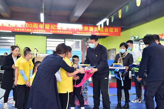 3月21日是第10个“世界唐氏综合征日”, 长春市智力残疾人及亲友协会开展了“喜迎建党100周年暨第十个世界综合征日”主题活动。长春市残联党组书记、理事长尹晓民参加活动,并为孩子们送上节日礼物。