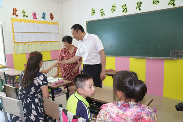 图为区政府领导在育龙特殊儿童语言康复培训学校调研