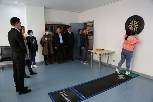 调研组来到朝阳区残疾人劳动就业服务中心。恰逢备战全国旱地冰壶比赛、省残运会飞镖项目的残疾人运动员正在进行训练。工作人员向调研组介绍了旱地冰壶训练基地与飞镖训练中心成立过程,以及轮椅旱地冰壶队和飞镖队日常训练情况。随后调研组来到湖西街道抚松社区臧秀岩家中,了解康复体育进家庭服务项目的开展情况。社区健身指导员迟井林具体介绍了康复体育指导工作开展情况。臧秀岩表示通过坚持不懈的锻炼,手臂力量得到了一定提升,身体机能逐渐恢复。