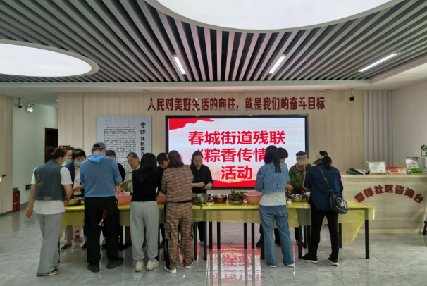 5月22日,春城街道残联在雷锋社区举办了一场端午节“粽香传情”活动。旨在让残疾人群体体验传统文化,提升生活技能,增强社会归属感。共有20余名残疾人朋友参加此次活动。